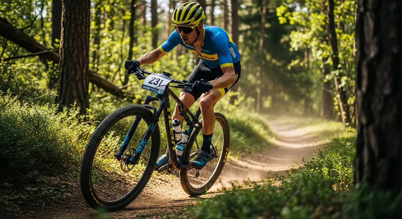XC race nutrition: 1.5-2.5h events. Pre-load carbs, minimal on-bike nutrition needed.